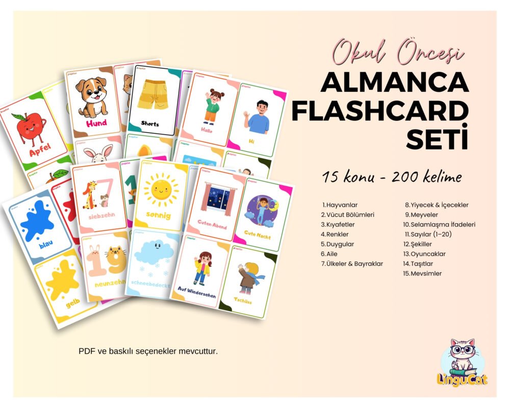 Almanca Flashcard Seti 15 Konu – 200 Kelime (PDF – DİJİTAL ÜRÜN)