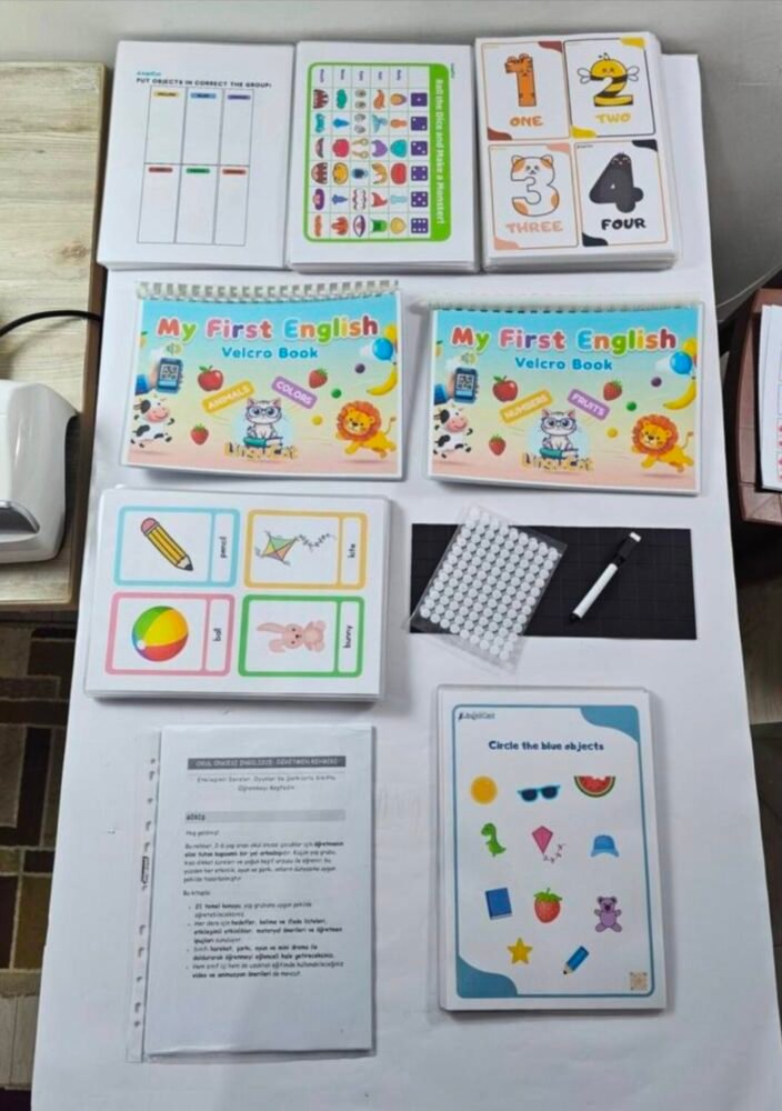 Bu set, okul öncesi İngilizce derslerinde öğretmenin sınıf içinde doğrudan kullanabileceği temel materyalleri tek pakette sunmak için hazırlanmıştır.